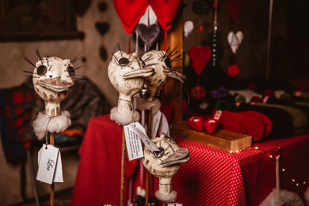 Vakker pynt i halm og never, nydelige linduker, varme votter i ull og skinn og selvsagt kniplingene, som Vadstena er viden kjent for. Her kan du kjøpe julepynt til deg selv, om du vil, eller gjøre unna julehandelen. Det er også koselig å bare gå rundt og ta inn stemningen.